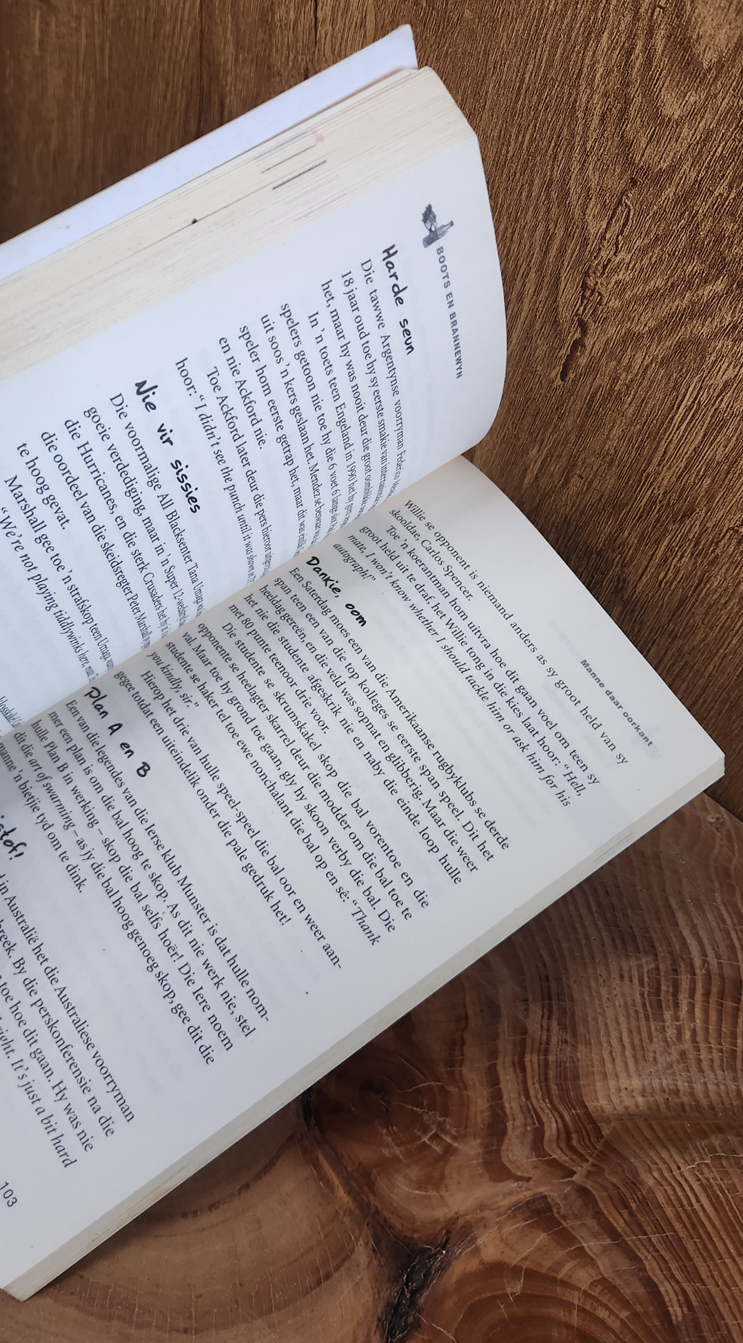 Of jy nou vir Bitterfontein, die Blou Bulle of die Bokke speel, rugby bly ’n spel met baie snaakse situasies, op en van die veld. Daar's nie nog 'n sport waaruit soveel stories uit die skrum van die lewe gehaak word nie.