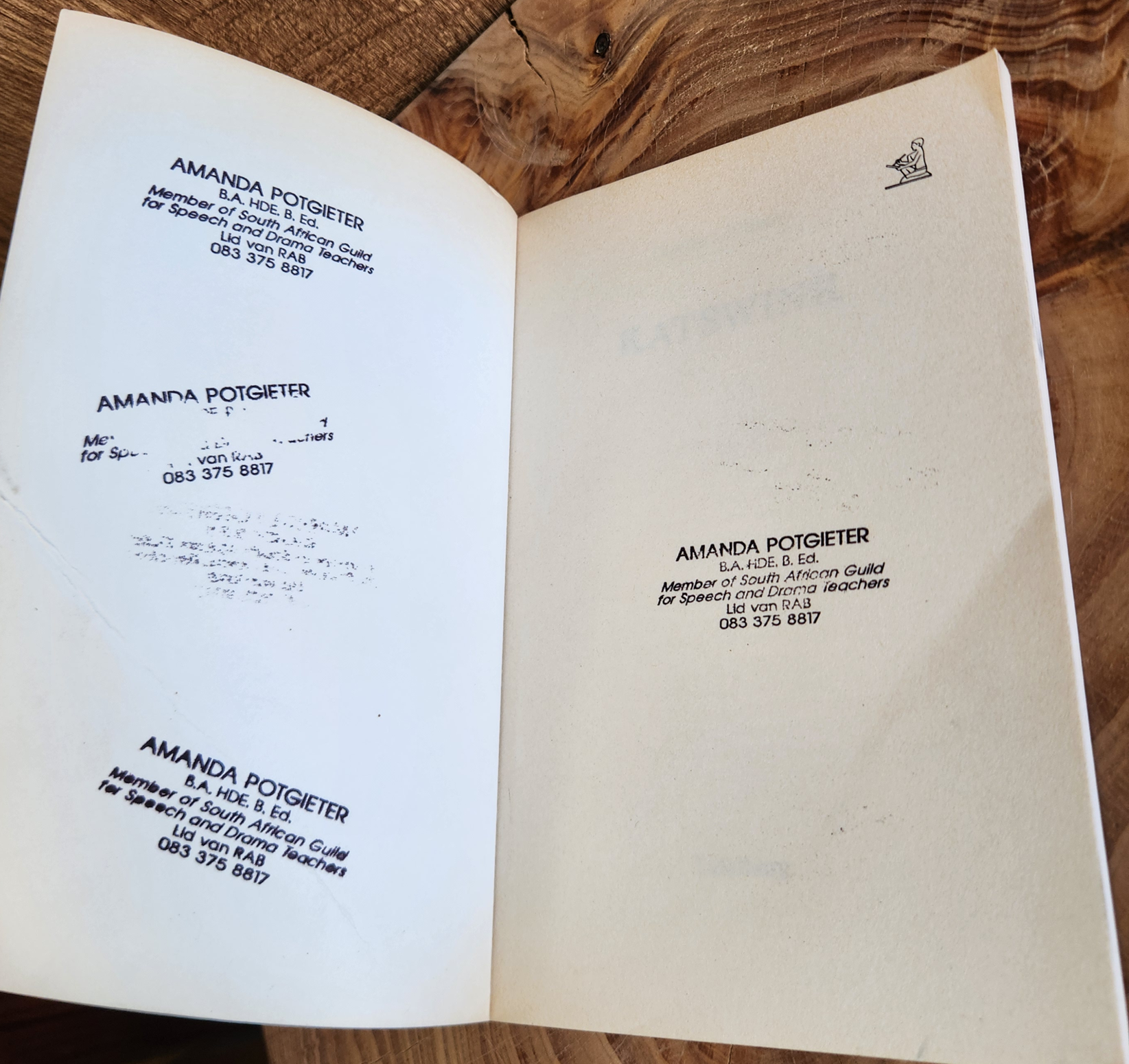 Medium paperback, cover has a bent crease mark, stamps inside front cover and first page, yellowing pages