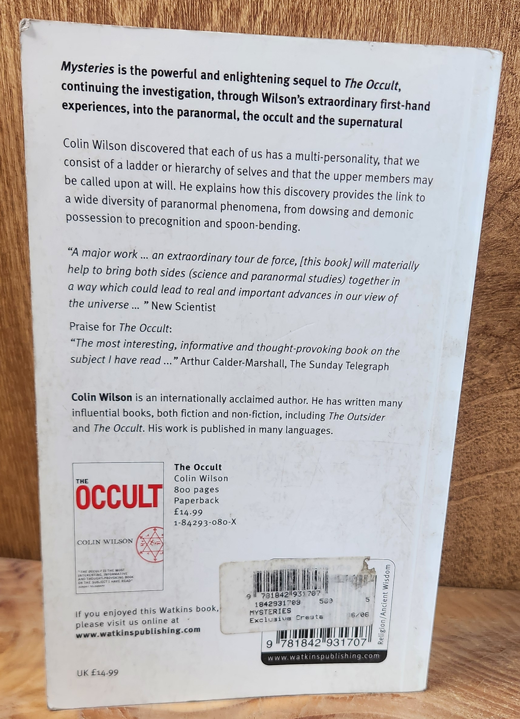 Thru personal experience, Colin Wilson discovered that human beings consist of a ladder or hierarchy of selves, whose upper members may be called upon at will for personal transformation & deep knowledge. His new-found knowledge spurred him to write Mysteries: An Investigation into the Occult, the Paranormal & the Supernaturalan attempt to apply his theory to all paranormal phenomena, from precognition to Uri Geller's spoon bending. He presents detailed studies of hauntings, possession & demonic hypnosis, as well as magic, the Kabbalah & astrology. At the heart of his work is a fascinating discussion of the Great Secret of the alchemists, which he sees as the key to the mystery of the ladder of selves.