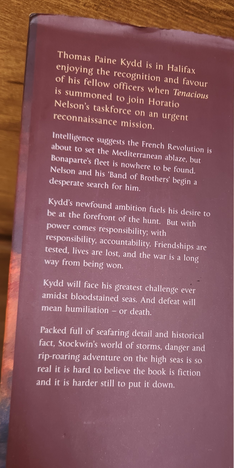 This book finds Thomas Kydd aboard Tenacious, part of a small squadron commanded by Vice Admiral Horatio Nelson. Its mission is to scour the Mediterranean and locate Napoleon and his army. Kydd's newly fired ambition leads him to volunteer for shore service in the capture of Minorca. Later, he faces the great ships-of-the-line at the Battle of the Nile as the British take on the French in a no-holds-barred struggle for supremacy in southern waters. But there is one more test to come: the Siege of Acre, where Kydd and a handful of British seamen under the command of Sir Sidney Smith face an army of thirteen thousand!