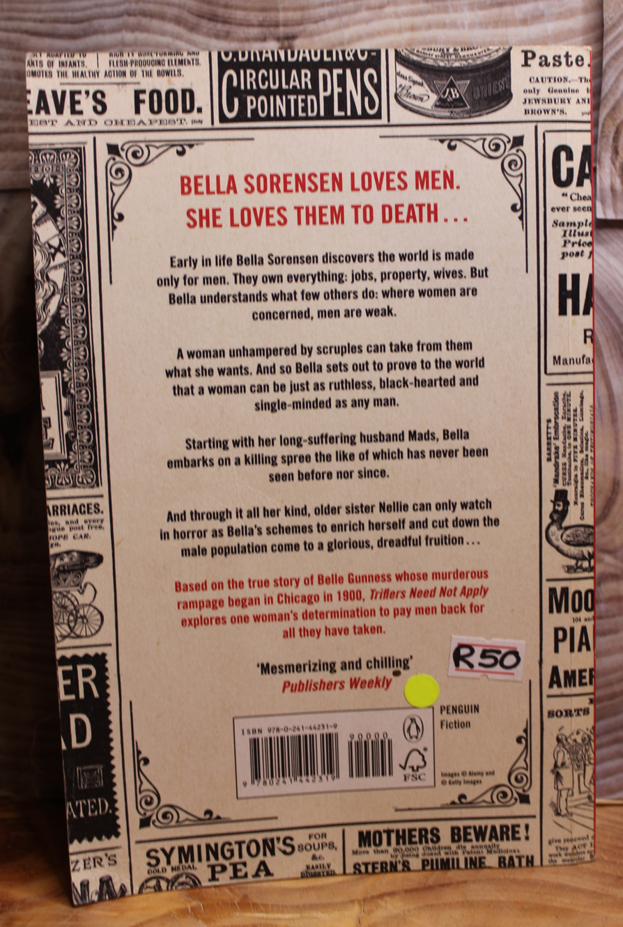 Based on the true story of Belle Gunness whose murderous rampage began in Chicago in 1900, Triflers Need Not Apply is a novelistic tour de force exploring one woman's determination to pay men back for all they have taken.